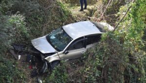 Bilecik’te tekerleği kopan otomobil dere yatağına yuvarlandı. Kazada iki kişi yaralandı.